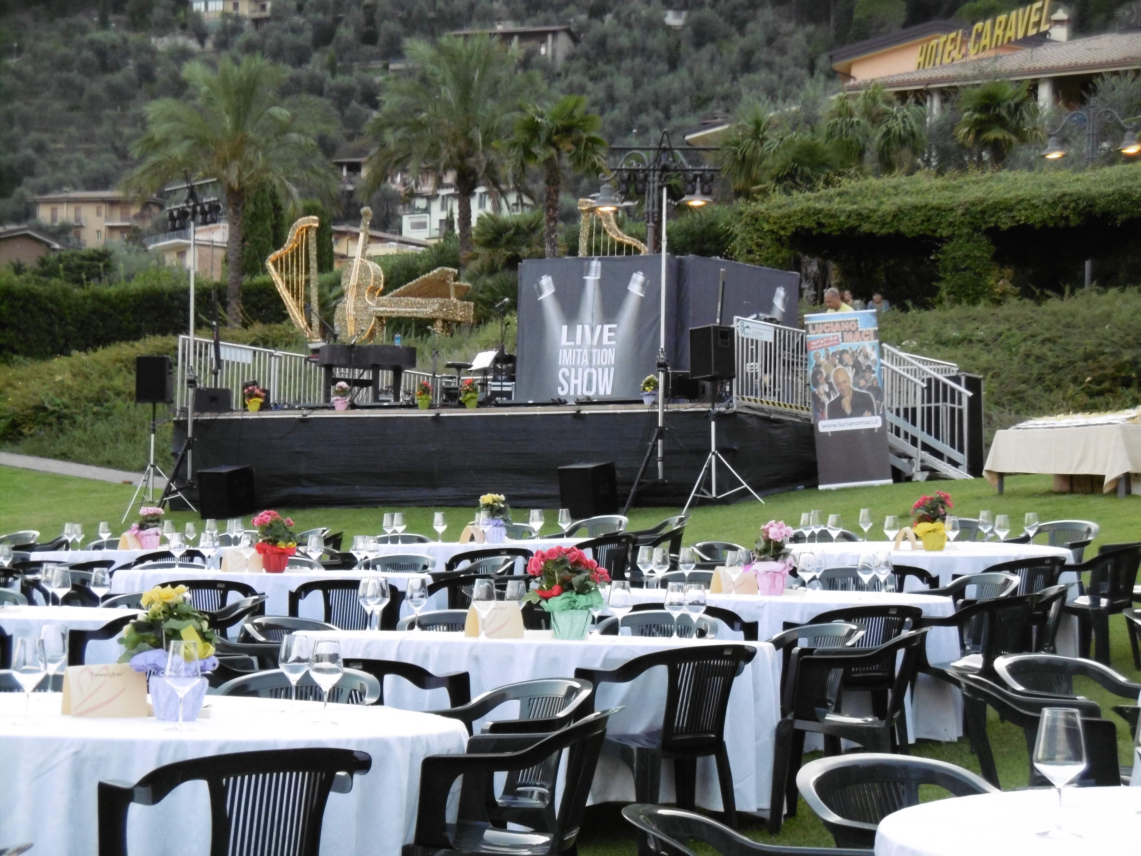 Zu Beginn lieferte der bekannte Verwandlungskünstler Luciano Maci eine tolle perfekte Show und verwandelte sich in Sekunden in Adriano Celentano, Andrea Bocceli, Joe Cocker und andere bekannte Stars und brauchte die 500 geladenen Gäste zum Toben.