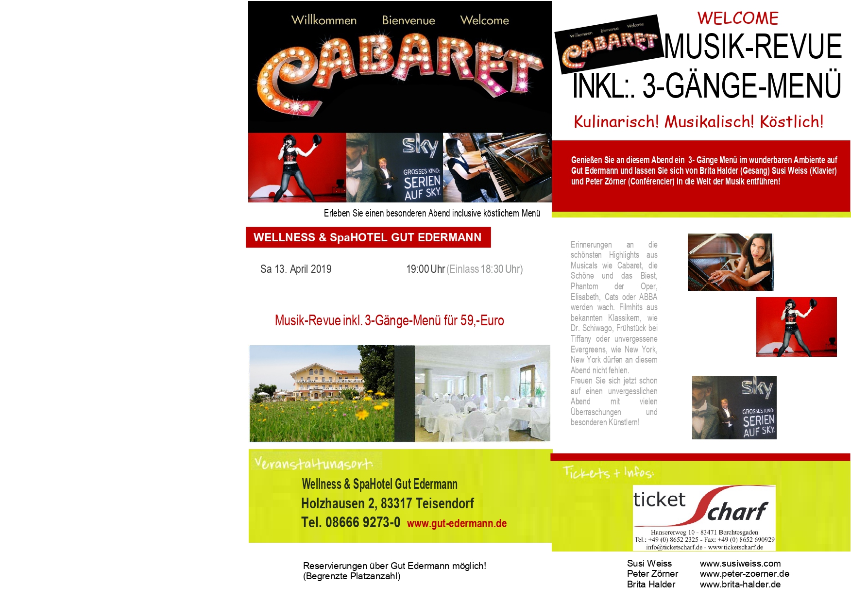 Peter Zörner ist durch seine Buchreihe im In- und Ausland bekannt und ein gefragter Entertainer und Moderator. Die drei Künstler standen schon bei zahlreiche Musical-, Filmmusik sowie Operetten- und Liederabenden gemeinsam u.a. in Salzburg, Bad Reichenhall und Laufen und mehr auf der Bühne.