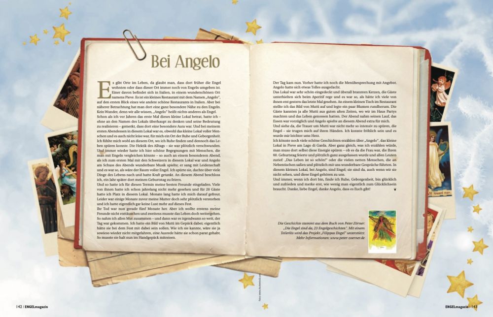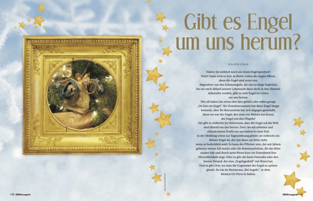 Ich freue mich sehr darüber dass eine tolle Zeitschrift über meine Engelsbuch schreibt. Denn die Engel sind da, Tag für Tag, Nacht für Nacht, und Jahr für Jahr. Engel kann man auf der Welt überall begegnen, man muss nur die Augen öffnen.