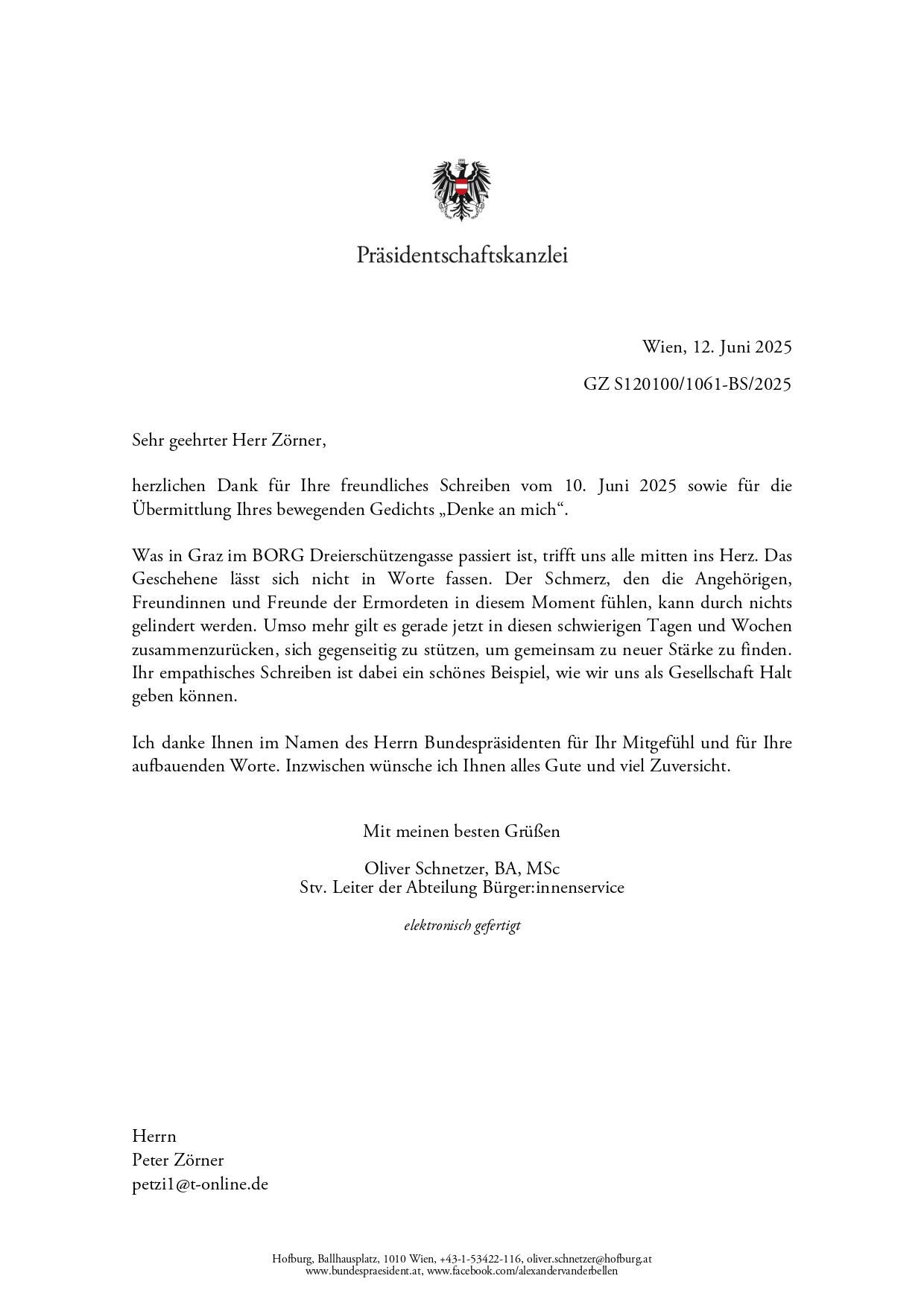 Sehr geehrter Herr Bundespräsident van der Bellen,
