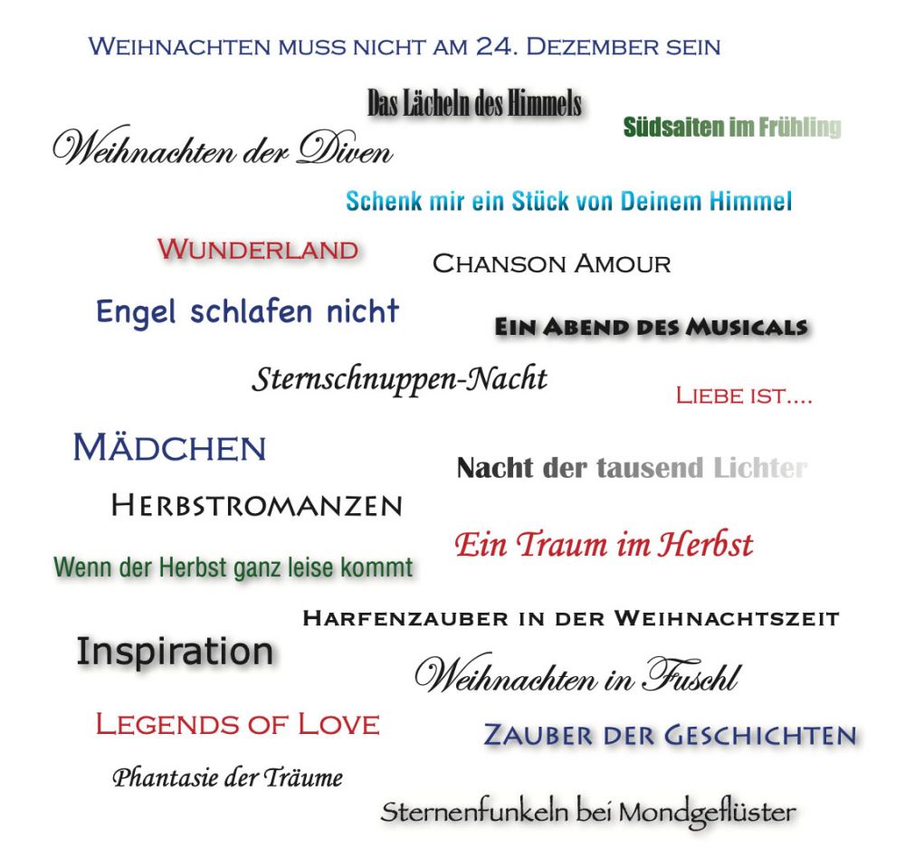 Sollten Sie also tolle Musiker bei Ihnen haben wollen (von Klassik bis Musical) dann senden Sie mir eine E-Mail mit Termin- und Musikwunsch.